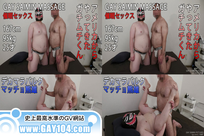 167cm 95kg 25才 かわいいむっちり青年が、熊雄と催◉セックスを体験してみたい!ということではるばるアメリカから遊びに来てくれました!さっそく熊雄は英語を使ってむっちり青年を深い催◉状態へ堕としていく!催◉の掛かりがバッチリなむっちり青年は、目がトロンとした深い催◉状態に!熊雄はむっちり青年の潜在意識にハレンチな暗示を刷り込んでいく!熊雄の事が世界で一番理想的な男性に見えてしまい、好きで好きでたまらなくなってしまう!熊雄の先走りダラダラの自慢のデカマラを恍惚の顔をしてしゃぶりまくる!アナルも完全にリラックスしてしまいトロトロになった状態で、がっつり熊雄のチンポでGスポットを当て掘りされる!そして最後は我慢できなくなってしまい、濃厚なザーメンをトコロテン射精して茫然自失のむっちり青年!「今までに経験した事の無い最高のセックスでした!」大満足なむっちり青年でした。あなたも催◉で、あり得ない程の最高のセックスを体験してみませんか? |